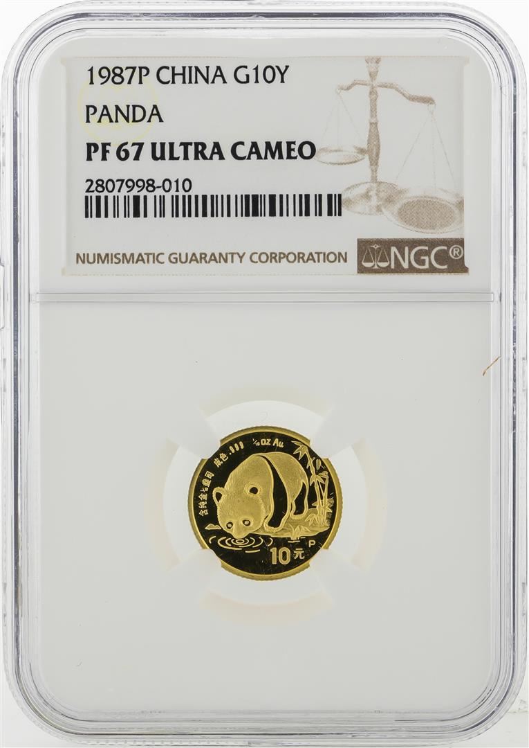 One1987P China 10 Yuan Panda Gold Coin NGC PF67 Ultra Cameo. NGC Certified.