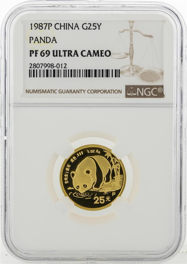One 1987P China 25 Yuan Panda Gold Coin NGC PF69 Ultra Cameo. NGC Certified.
