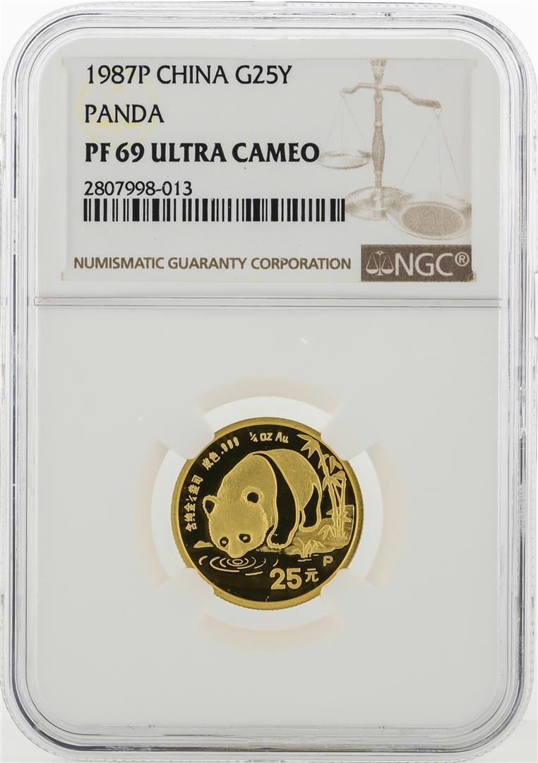 One 1987P China 25 Yuan Panda Gold Coin NGC PF69 Ultra Cameo. NGC Certified.