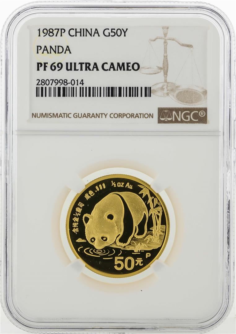 One 1987P China 50 Yuan Panda Gold Coin NGC PF69 Ultra Cameo. NGC Certified.