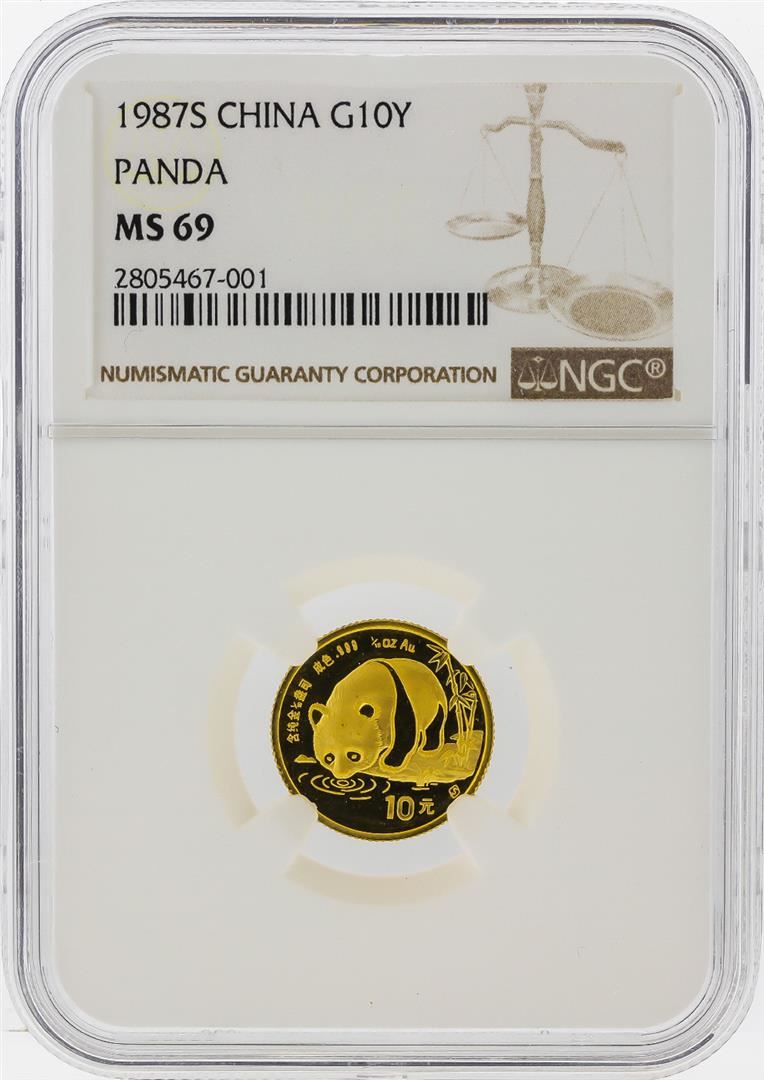 One 1987S-S 10 Yuan China Panda Gold Coin NGC MS69. NGC Certified.