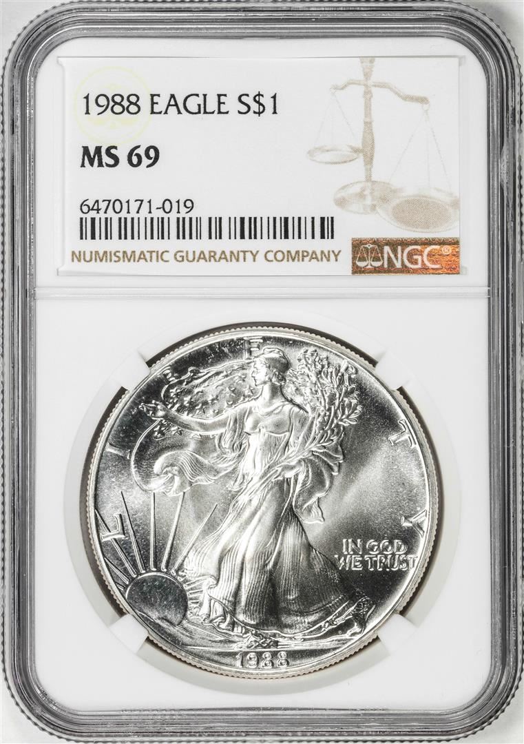 One 1988 $1 American Silver Eagle Coin NGC MS69.