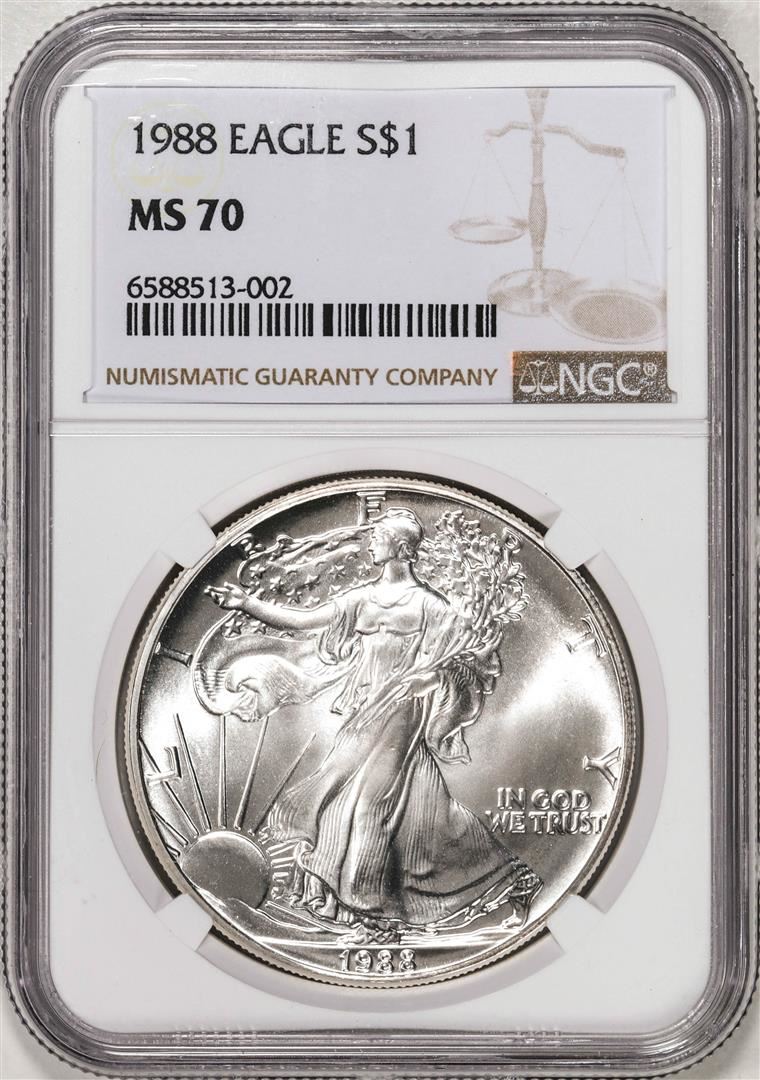 One 1988 $1 American Silver Eagle Coin NGC MS70. NGC Certified.