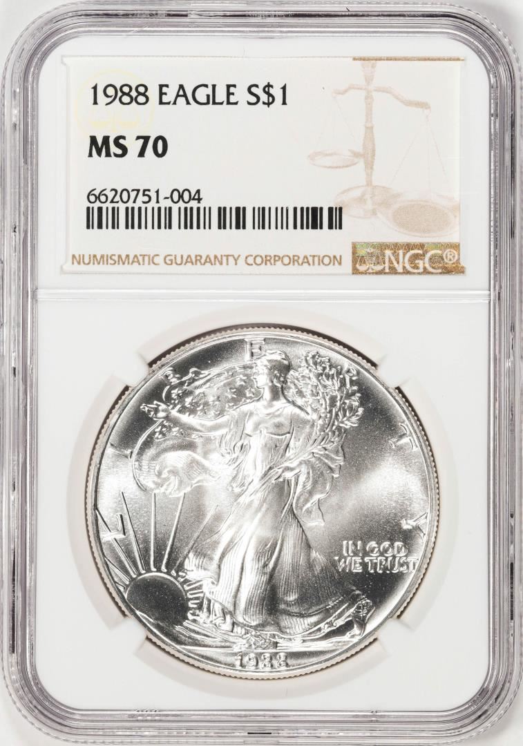 One 1988 $1 American Silver Eagle Coin NGC MS70. NGC Certified.