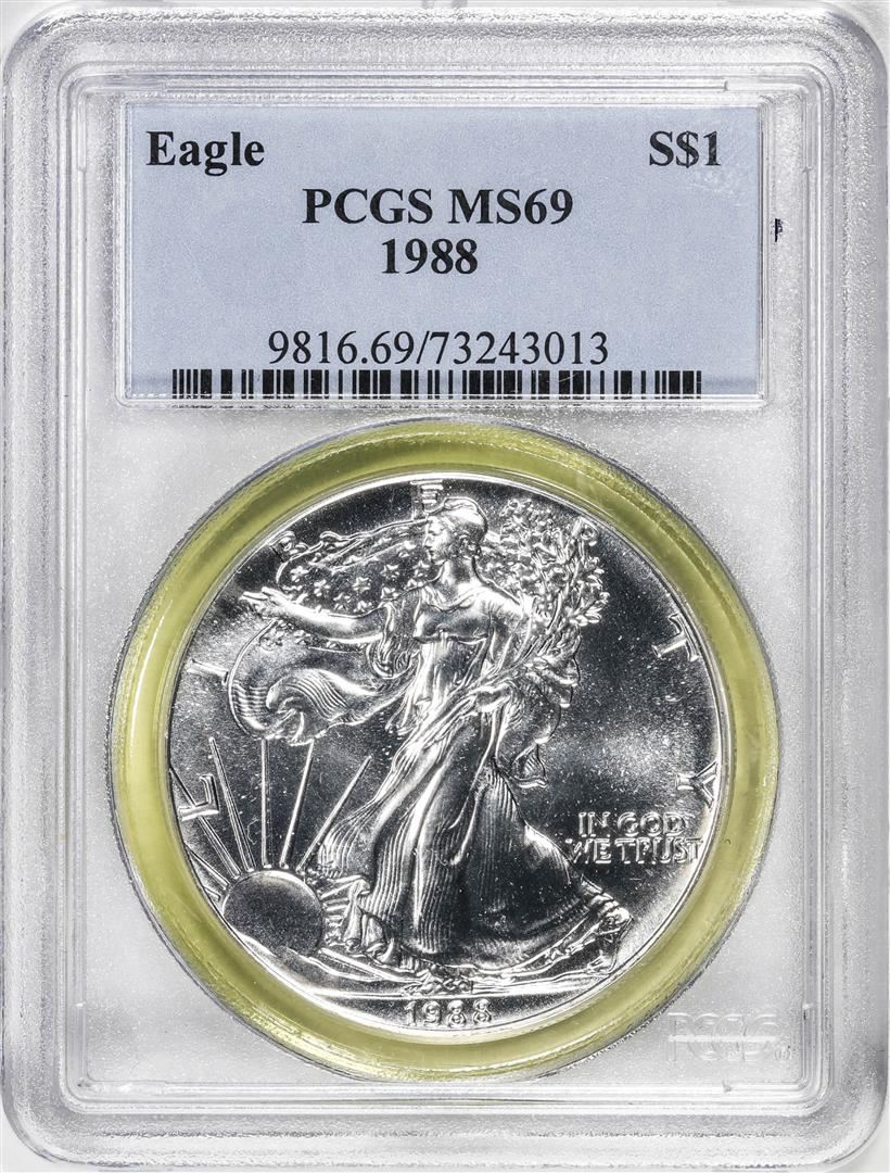 One 1988 $1 American Silver Eagle Coin PCGS MS69. PCGS Graded.