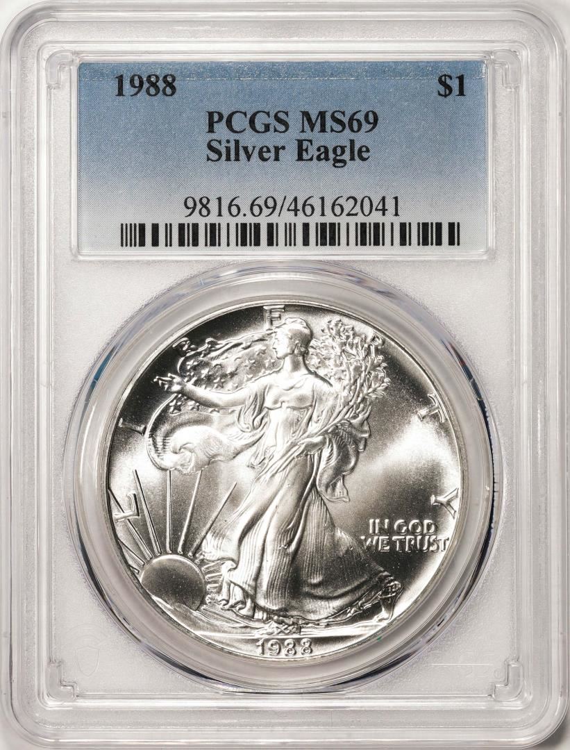 One 1988 $1 American Silver Eagle Coin PCGS MS69. PCGS Graded.