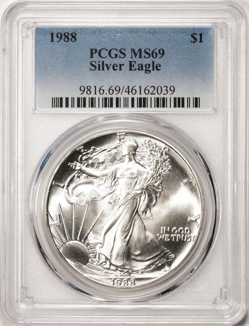One 1988 $1 American Silver Eagle Coin PCGS MS69. PCGS Graded.