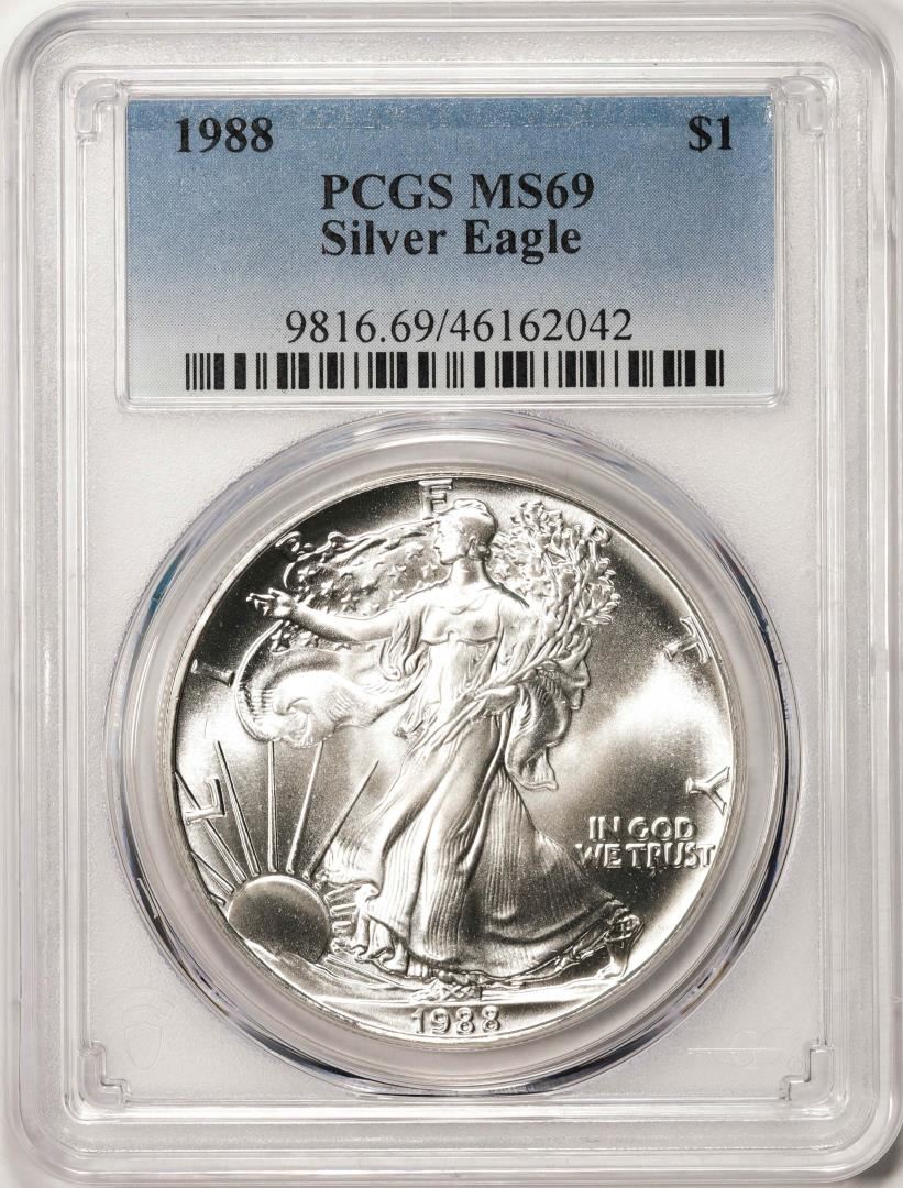 One 1988 $1 American Silver Eagle Coin PCGS MS69. PCGS Graded.
