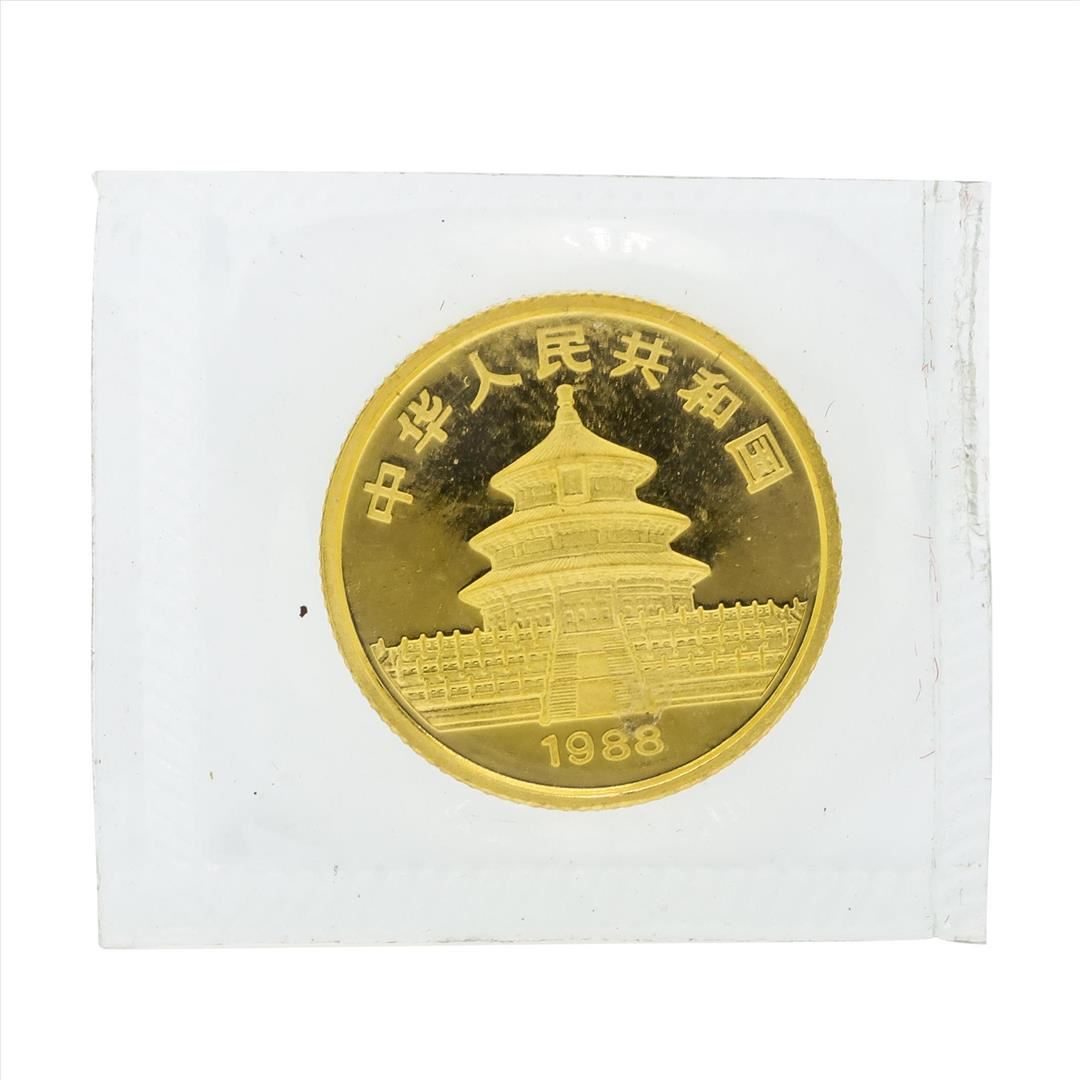 One 1988 10 Yuan China Panda 1/10 oz Gold Coin.
