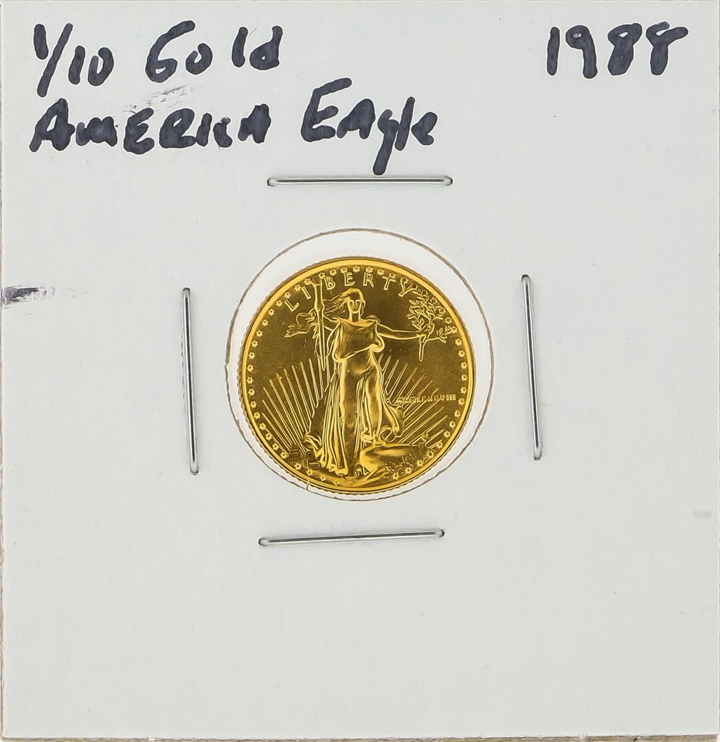 One 1988 $5 1/10oz American Gold Eagle Coin.