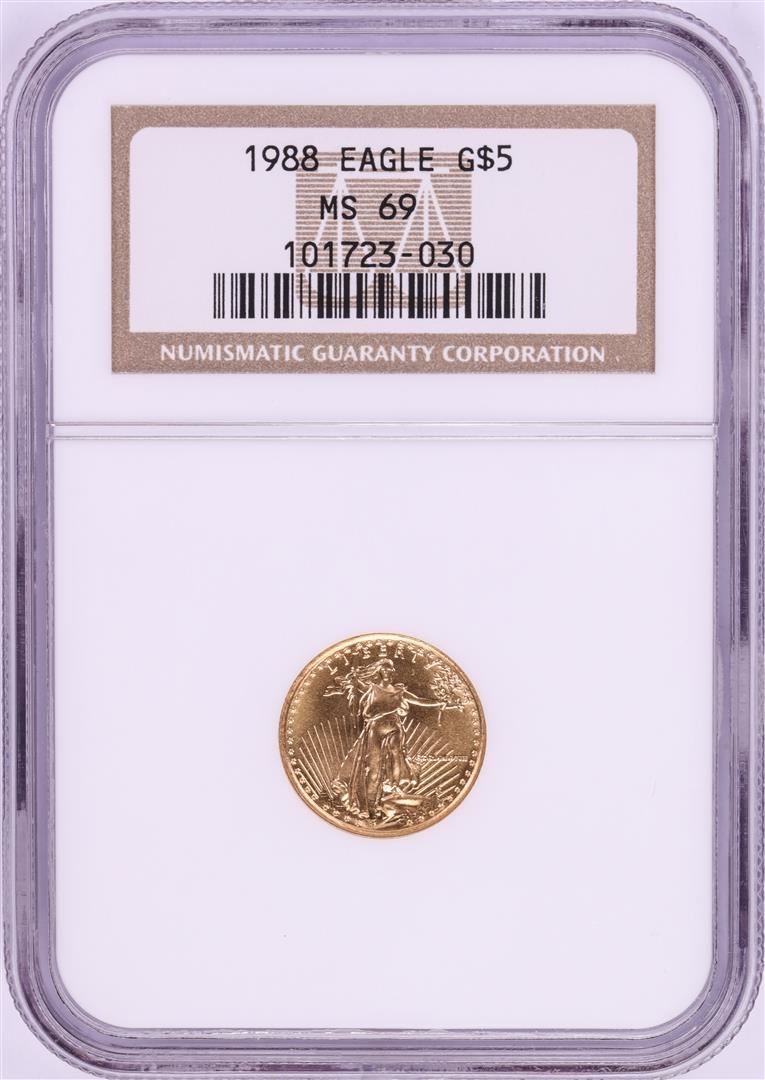 One 1988 $5 American Gold Eagle Coin NGC MS69. NGC Certified.