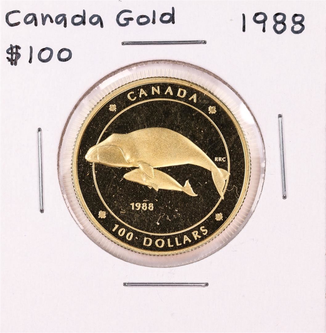 One 1988 Canada $100 Proof Bowhead Whale Gold Coin.