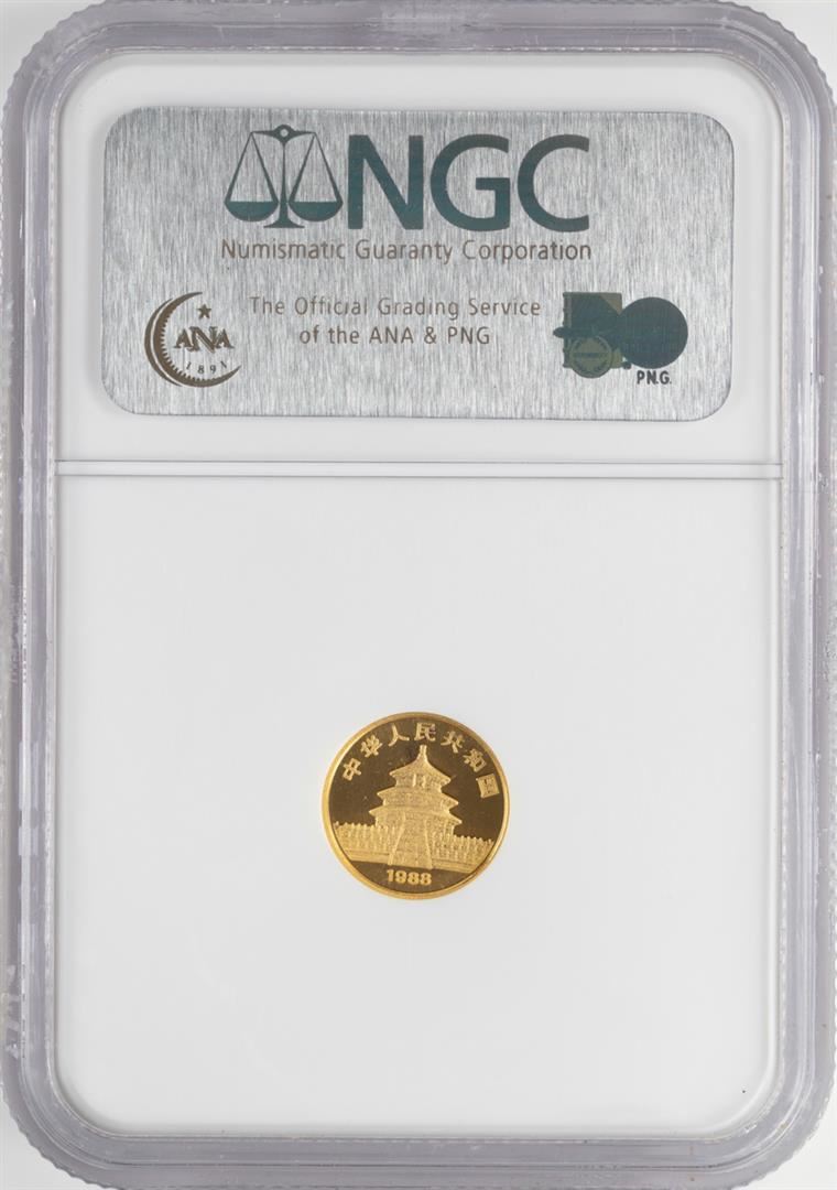 One 1988 China 1/20 oz Gold 5 Yuan Panda Coin NGC MS69. NGC Certified.