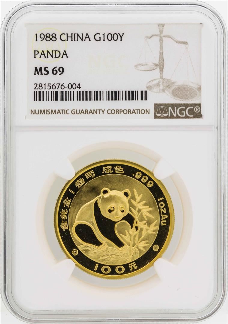 One 1988 China 100 Yuan Panda Gold Coin NGC MS69. NGC Certified.