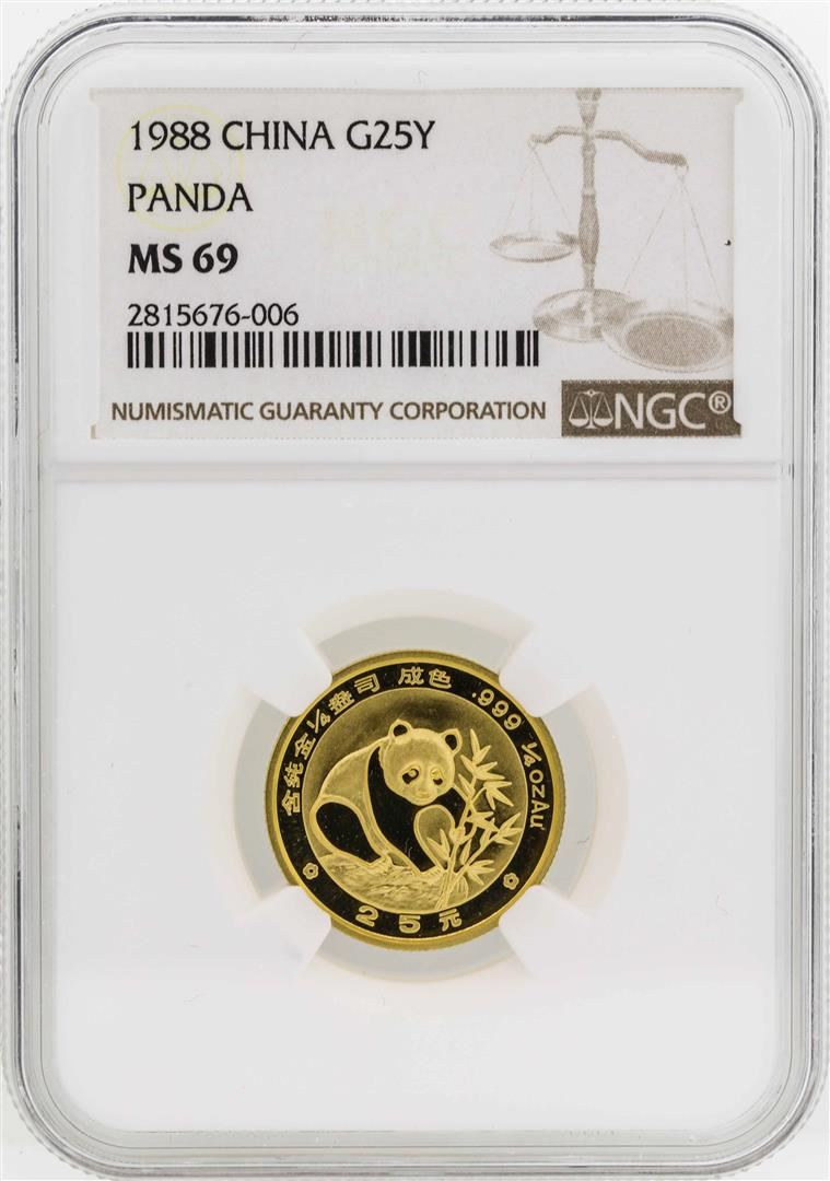 One 1988 China 25 Yuan Panda Gold Coin NGC MS69. NGC Certified.