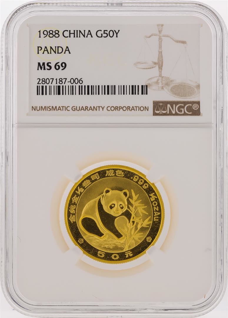 One 1988 China 50 Yuan Gold Panda Coin NGC MS69. NGC Certified.