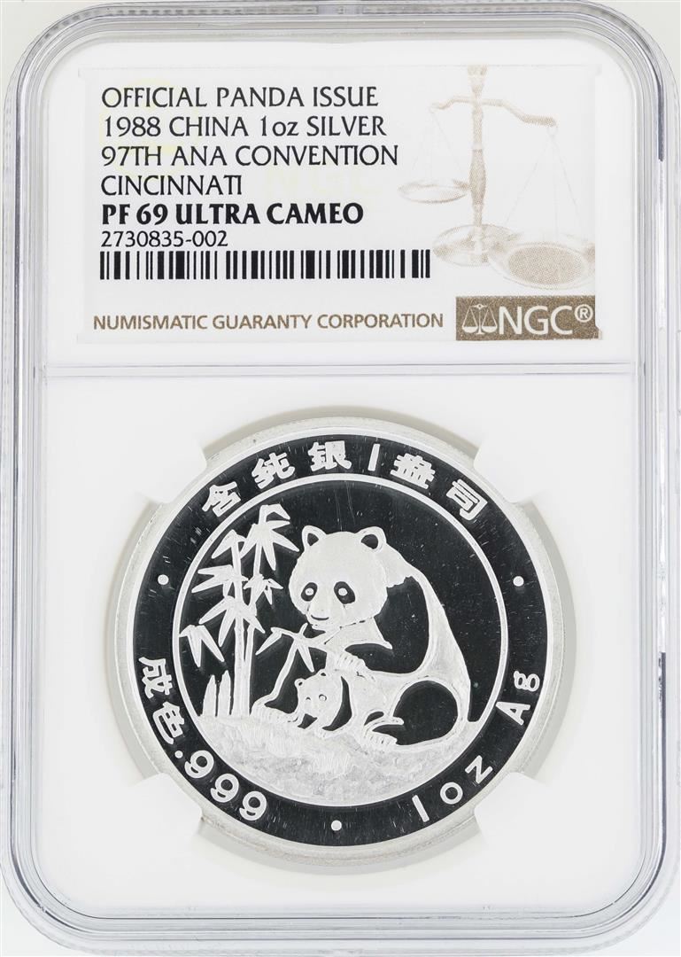 One 1988 China Panda 97th ANA Convention Cincinnati Silver Medal NGC PF69 Ultra Cameo. NGC Certified.