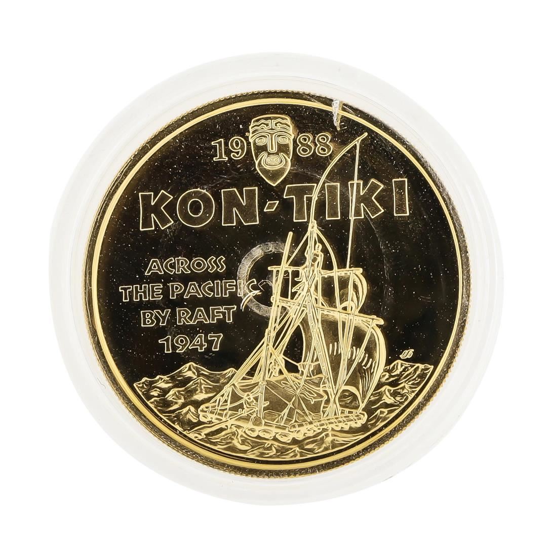 One 1988 Gold Western Samoa 100 Tala Kon Tiki Gold Coin.