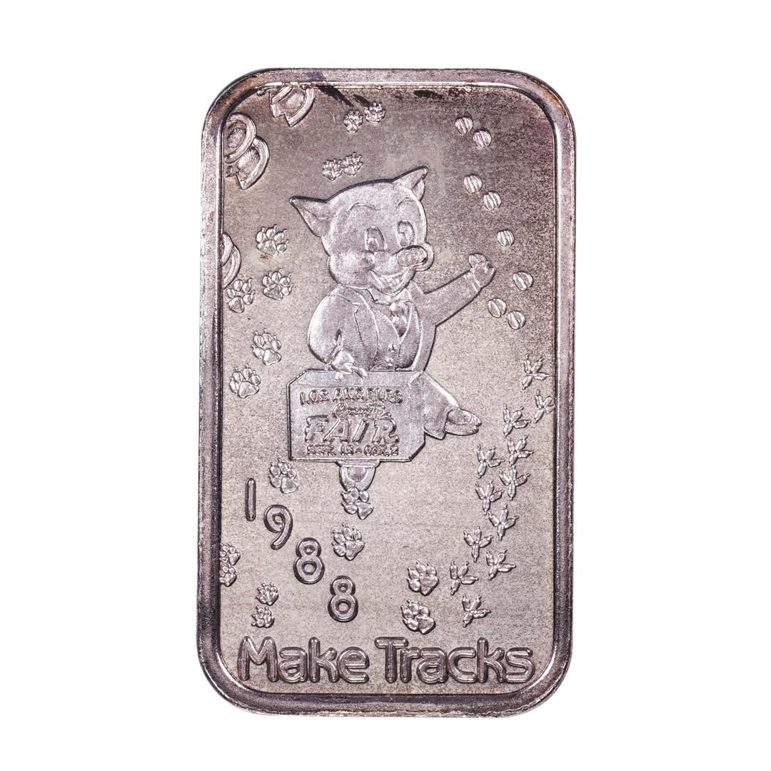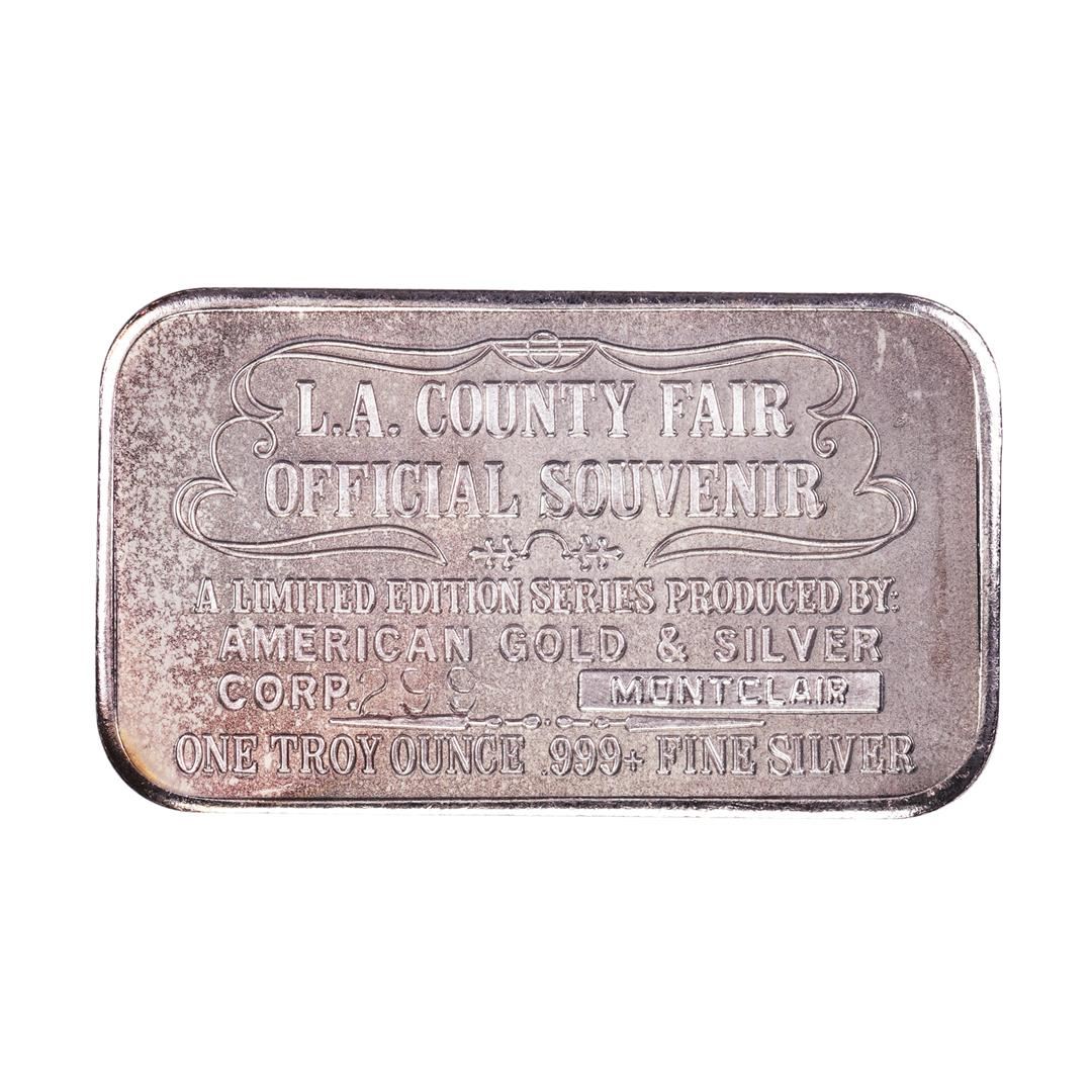 One 1988 L.A. County Fair Montclair, CA Limited Edition 1oz .999 Fine Silver Art Bar.