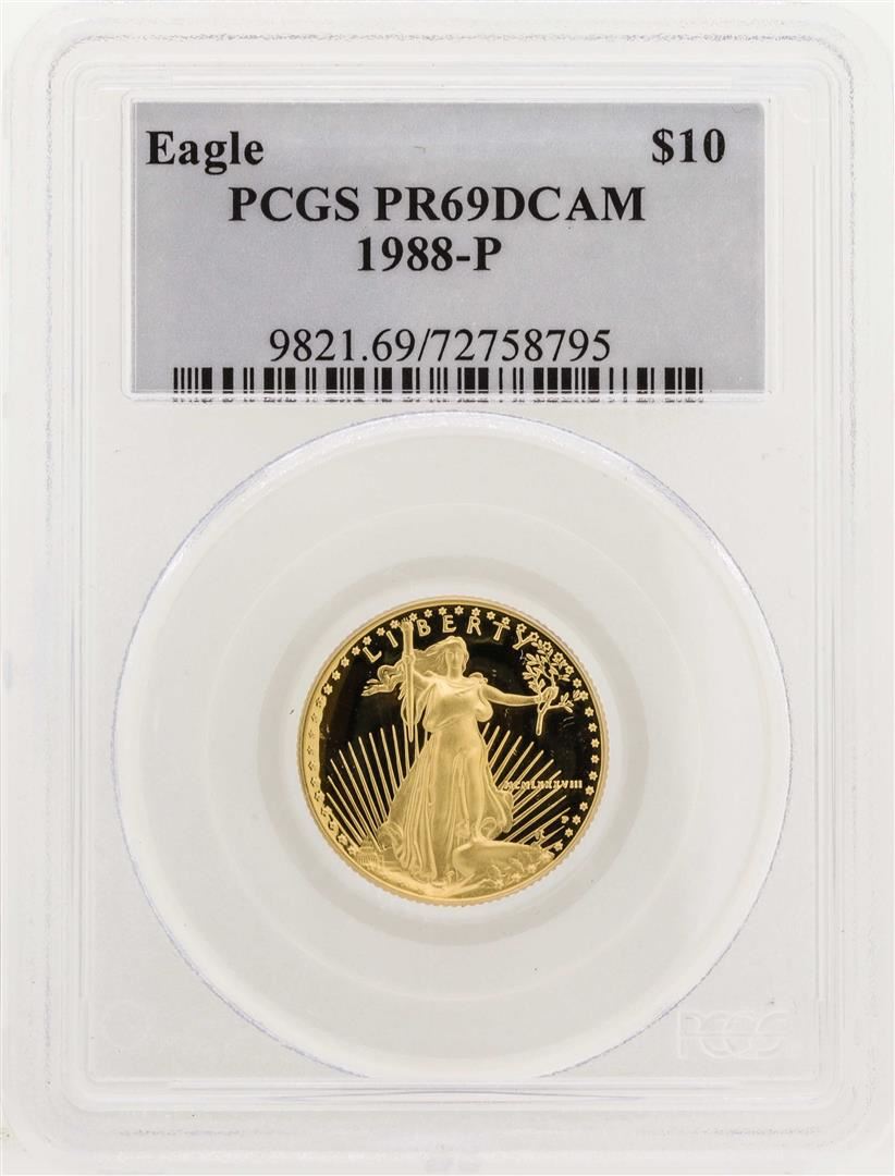 One 1988-P $10 American Gold Eagle Proof Coin PCGS PR69DCAM. PCGS Graded.