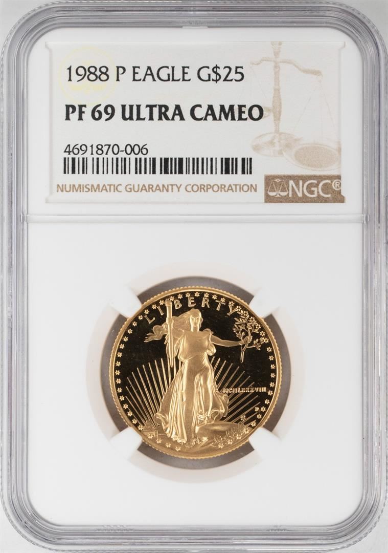 One 1988-P $25 Proof American Gold Eagle Coin NGC PF69 Ultra Cameo. NGC Certified.
