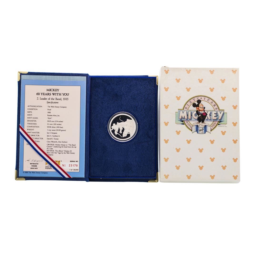 One 1988 Rarities Mint Disney Mickey Mouse Silver Proof Coin w/Box & COA.