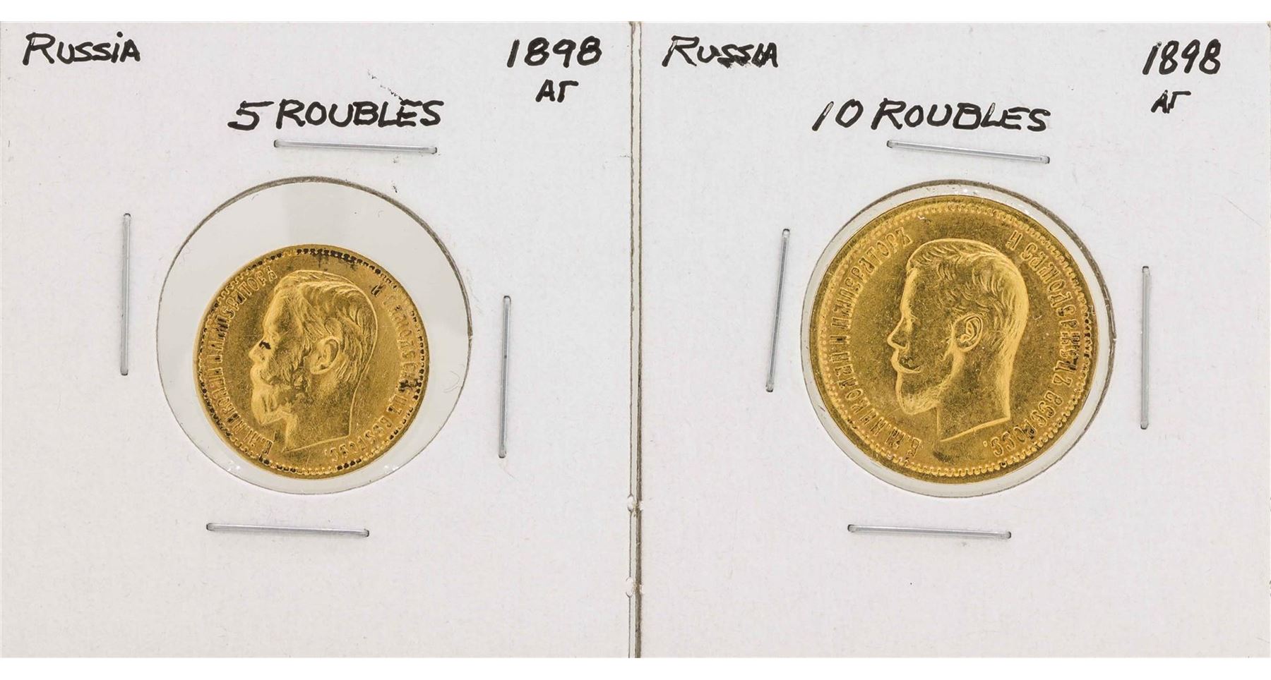 One 1988 Russian 5 Roubles & 10 Roubles Gold Coins .