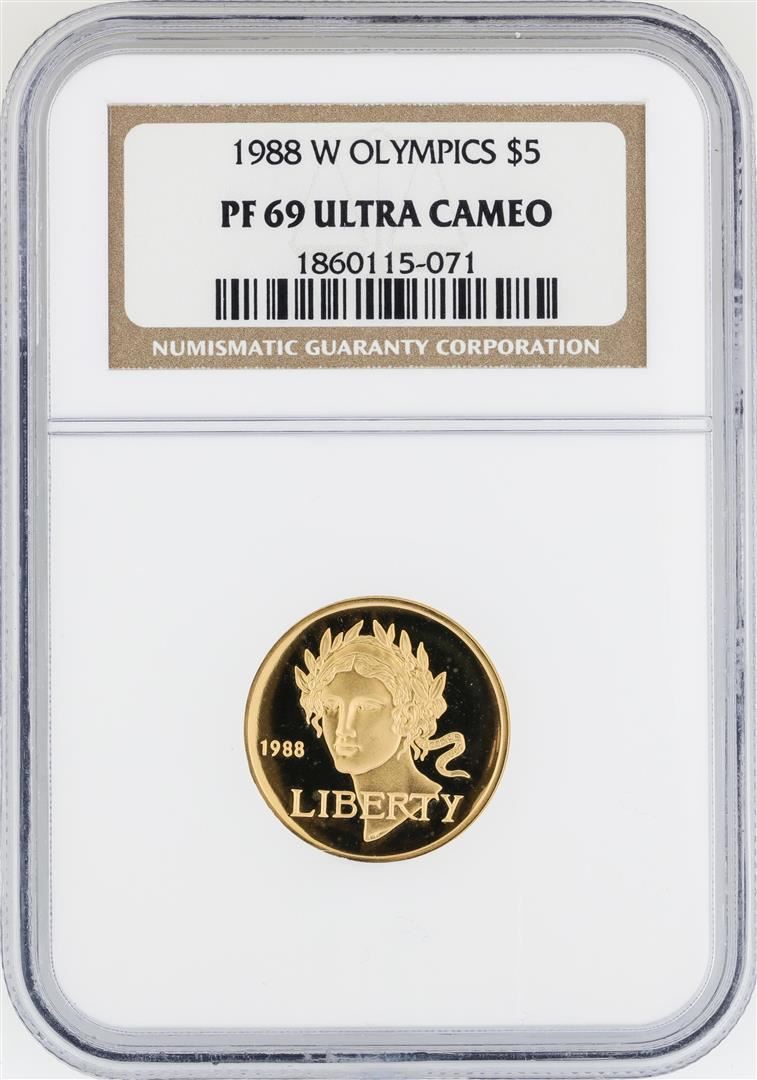 One 1988-W $5 Olympic Commemorative Gold Coin NGC PF69 Ultra Cameo. NGC Certified.