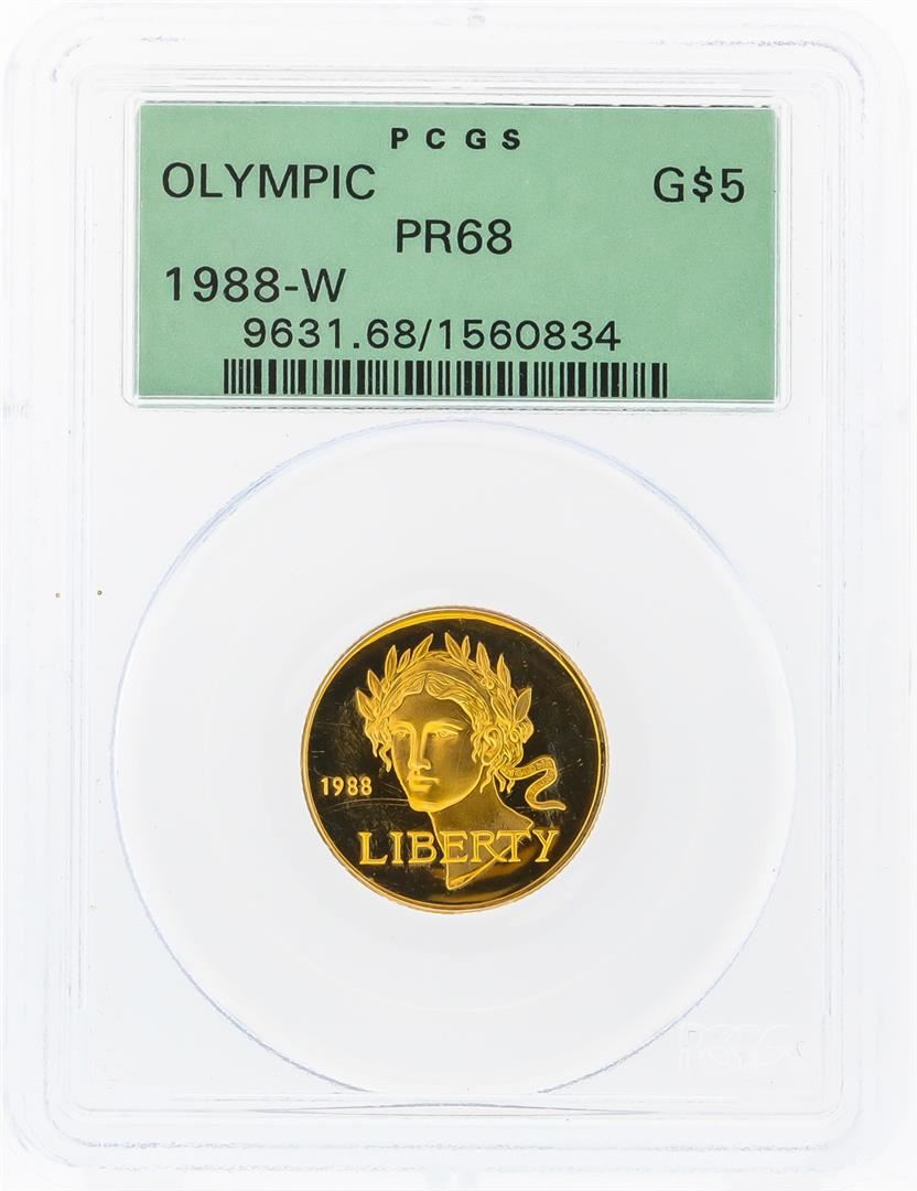 One 1988-W $5 Olympic Commemorative Gold Coin PCGS PR68. PCGS Graded.