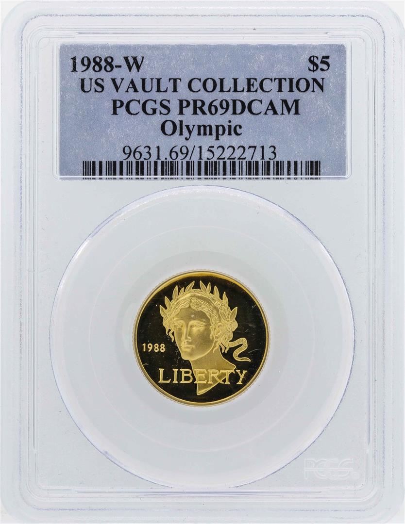 One 1988-W $5 US Vault Collection Olympic Gold Coin PCGS PR69DCAM. PCGS Graded.