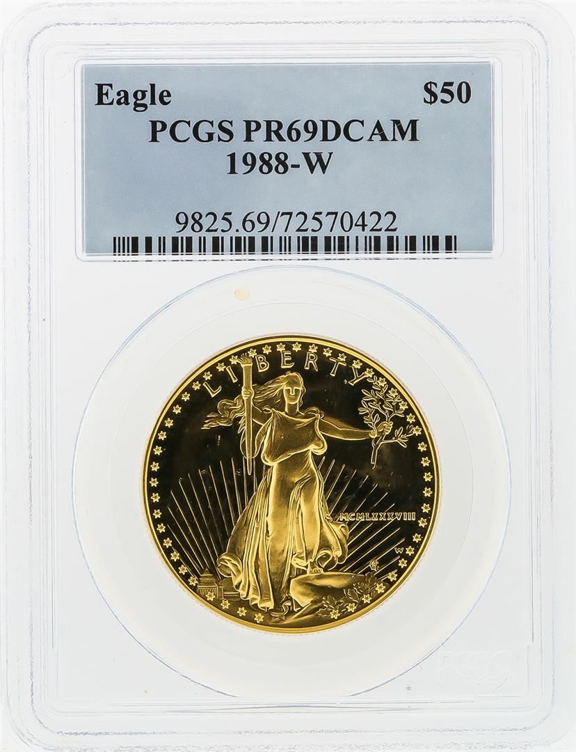 One 1988-W $50 American Gold Eagle Coin PCGS Graded PR69DCAM. PCGS Graded.