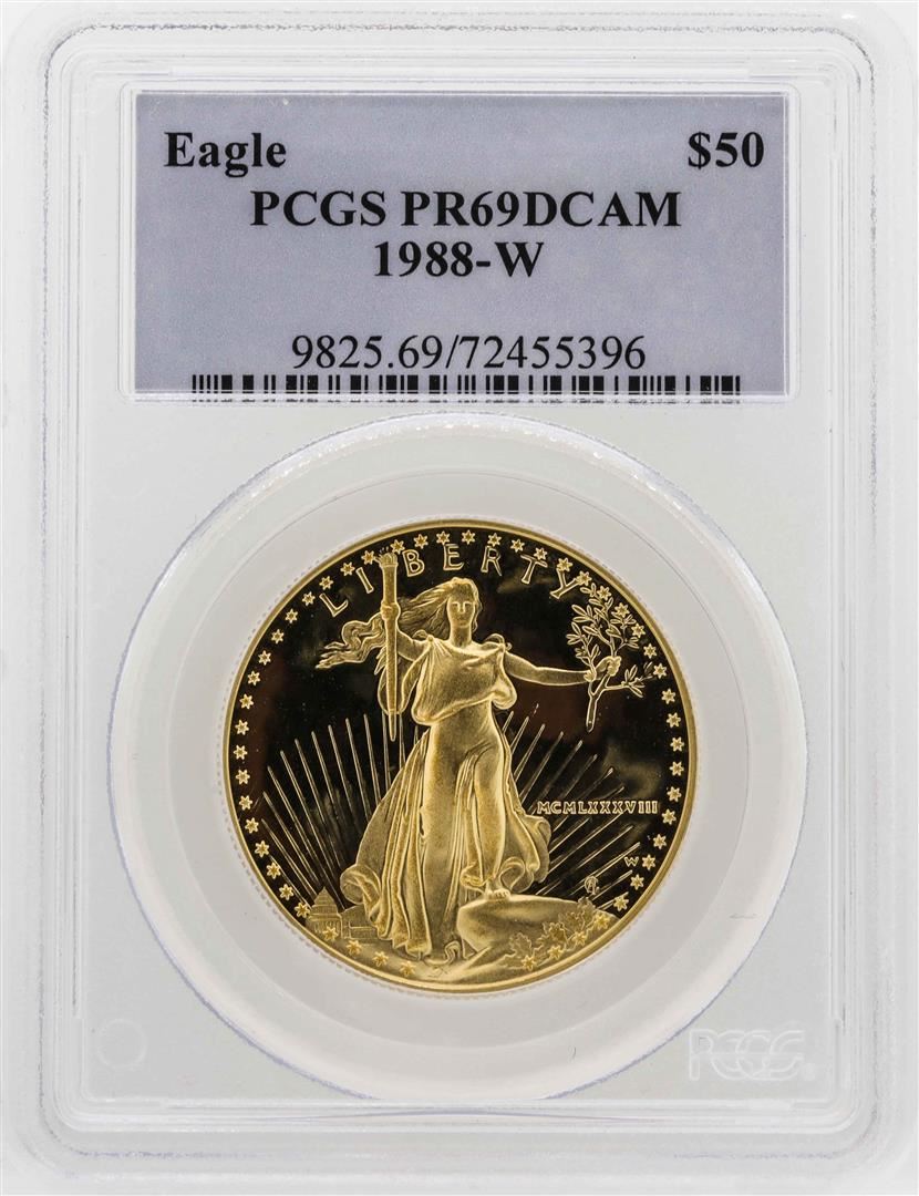 One 1988-W $50 American Gold Eagle Proof Coin PCGS PR69DCAM. PCGS Graded.