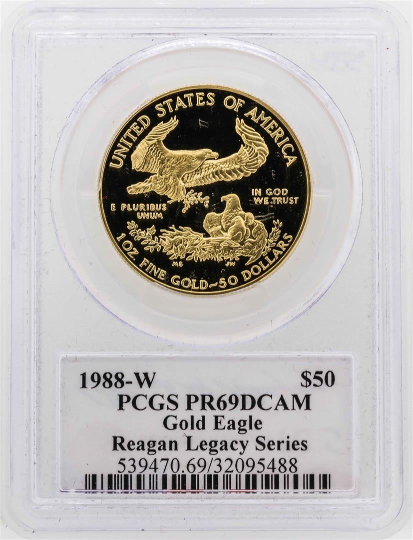 One 1988-W $50 American Gold Eagle Proof Coin PCGS PR69DCAM. PCGS Graded.