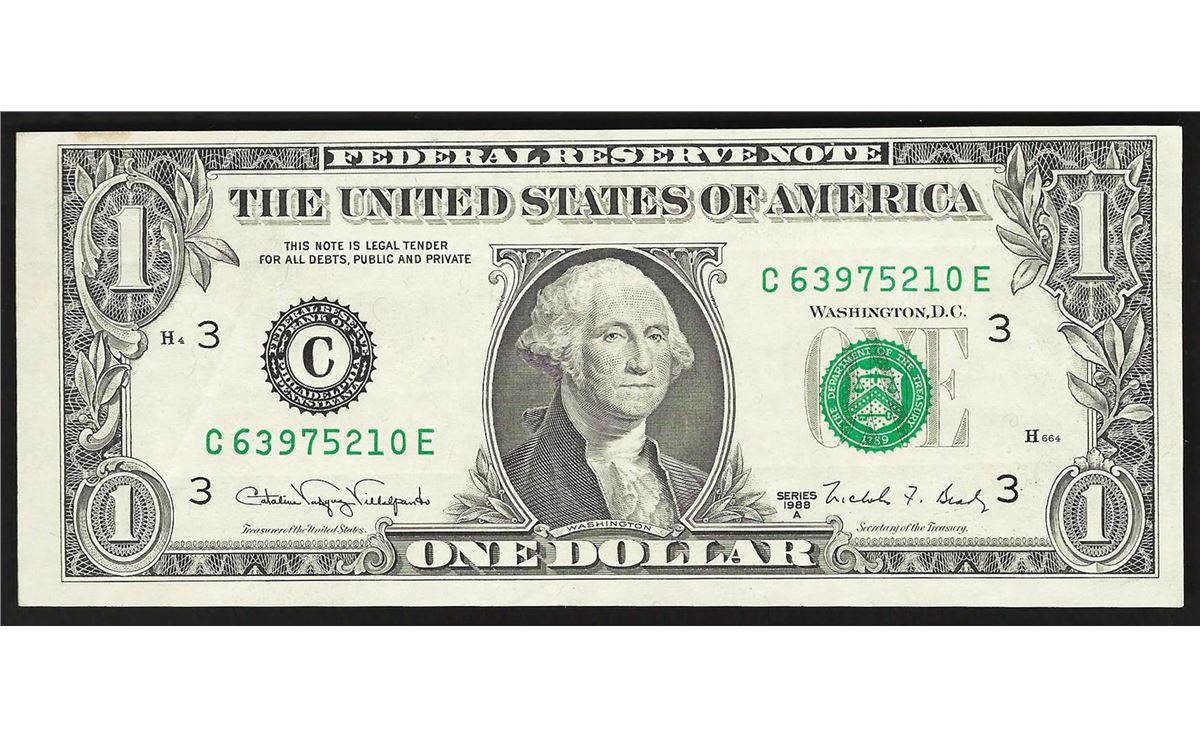One 1988A $1 Federal Reserve Note ERROR Faulty Alignment.