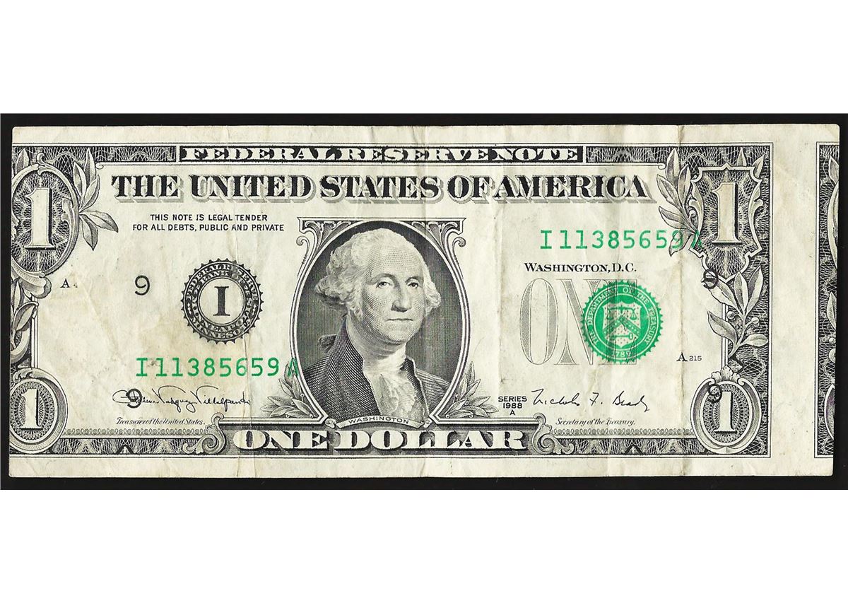 One 1988A $1 Federal Reserve Note ERROR Misalignment Shift.