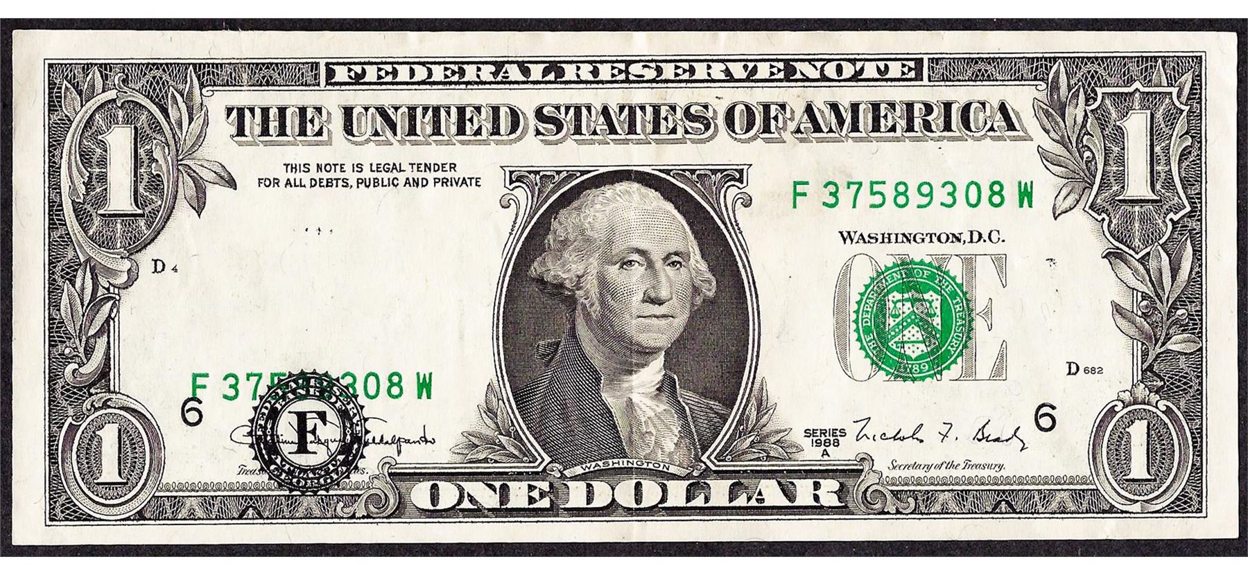 One 1988A $1 Federal Reserve Note Misalignment ERROR.