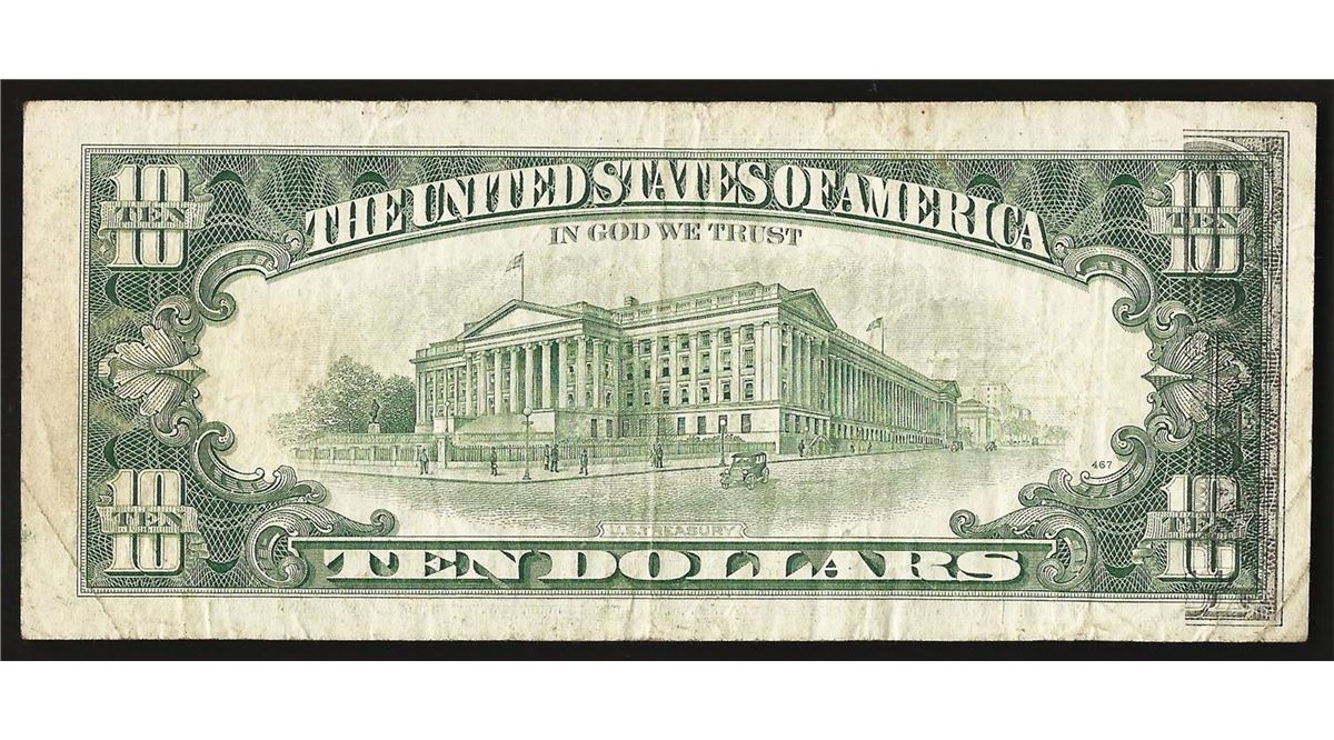 One 1988A $10 Federal Reserve Note ERROR Partial Offset.