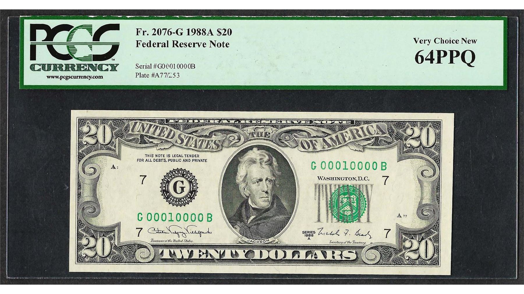 One 1988A $20 Federal Reserve Note Fancy SERIAL NUMBER PCGS Very Choice New 64PPQ. PCGS Graded.