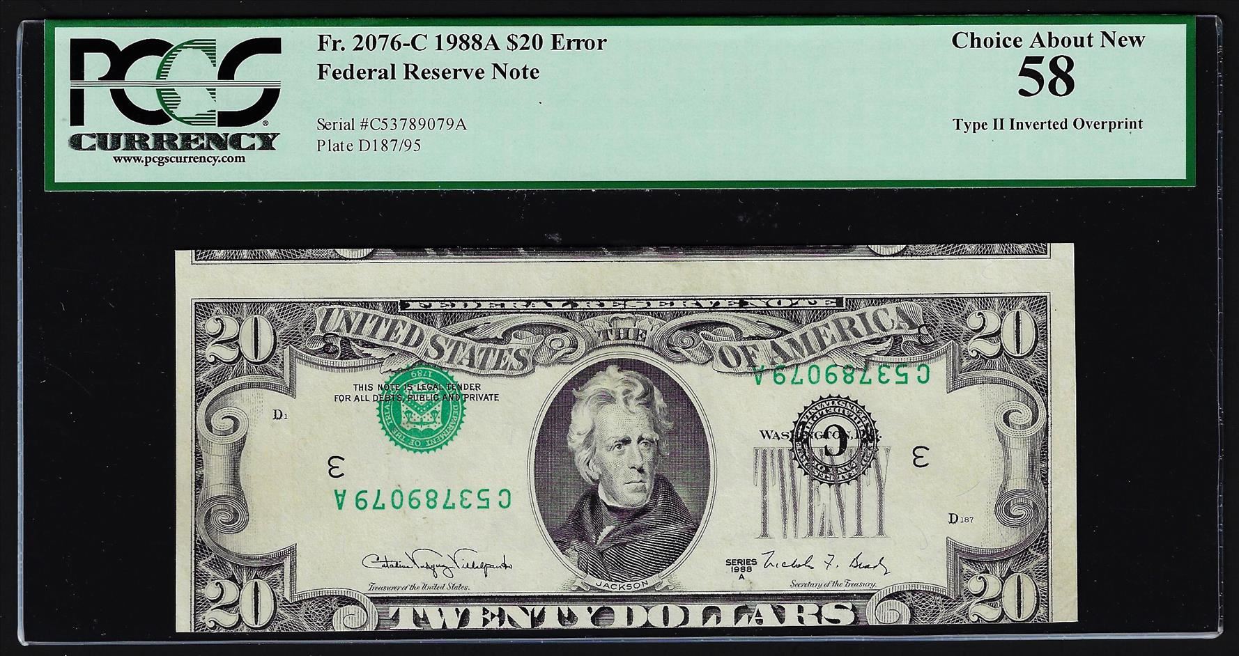 1988A $20 Federal Reserve Note Type II Inverted Overprint ERROR PCGS AU58