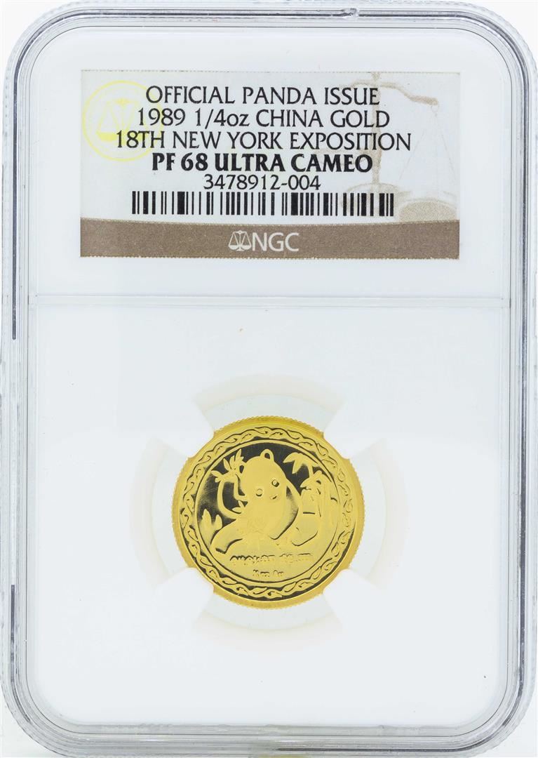 1989 1/4 oz. China Gold Panda 18th New York Exposition Coin NGC PF68 Ultra Cameo