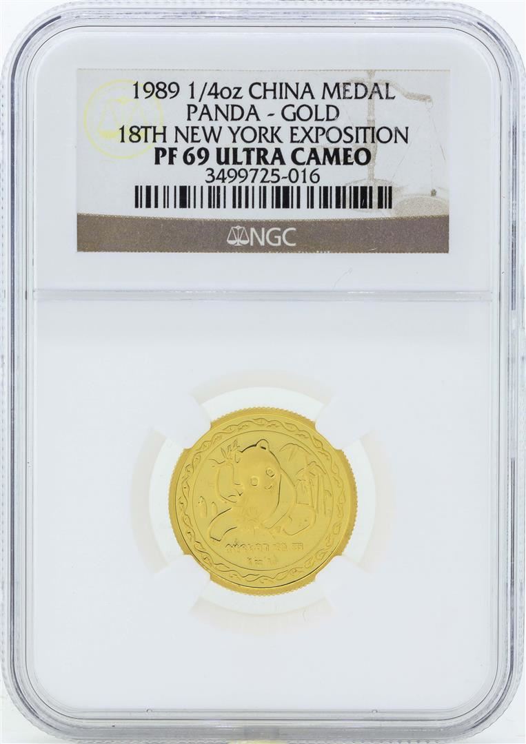 One 1989 1/4 oz. China Gold Panda 18th New York Exposition Coin NGC PF69 Ultra Cameo. NGC Certified.