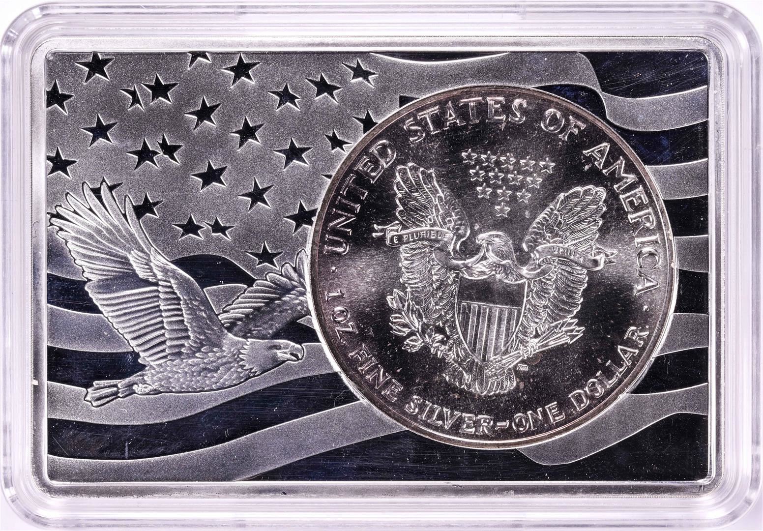 One 1989 $1 American Silver Eagle Coin & 2oz Silver Bar Set.