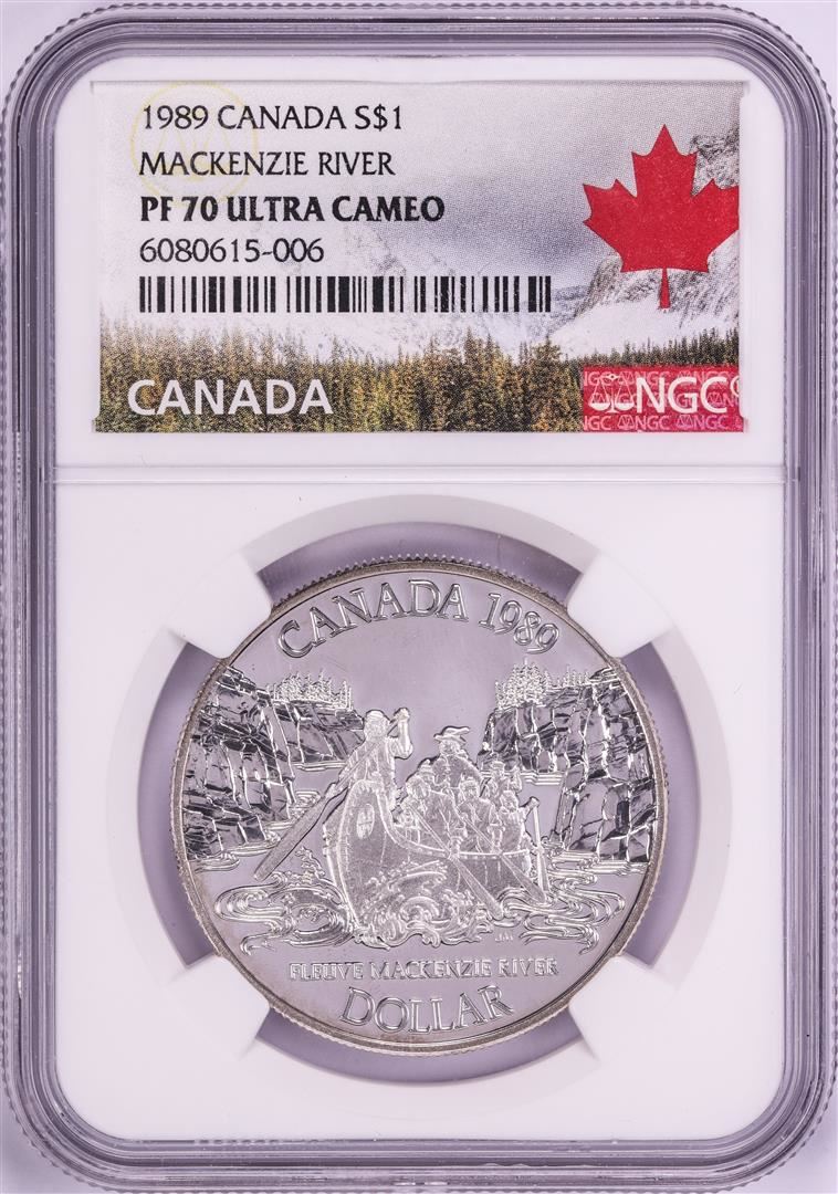 One 1989 $1 Proof Canada Mackenzie River Silver Dollar Coin NGC PF70 Ultra Cameo. NGC Certified.