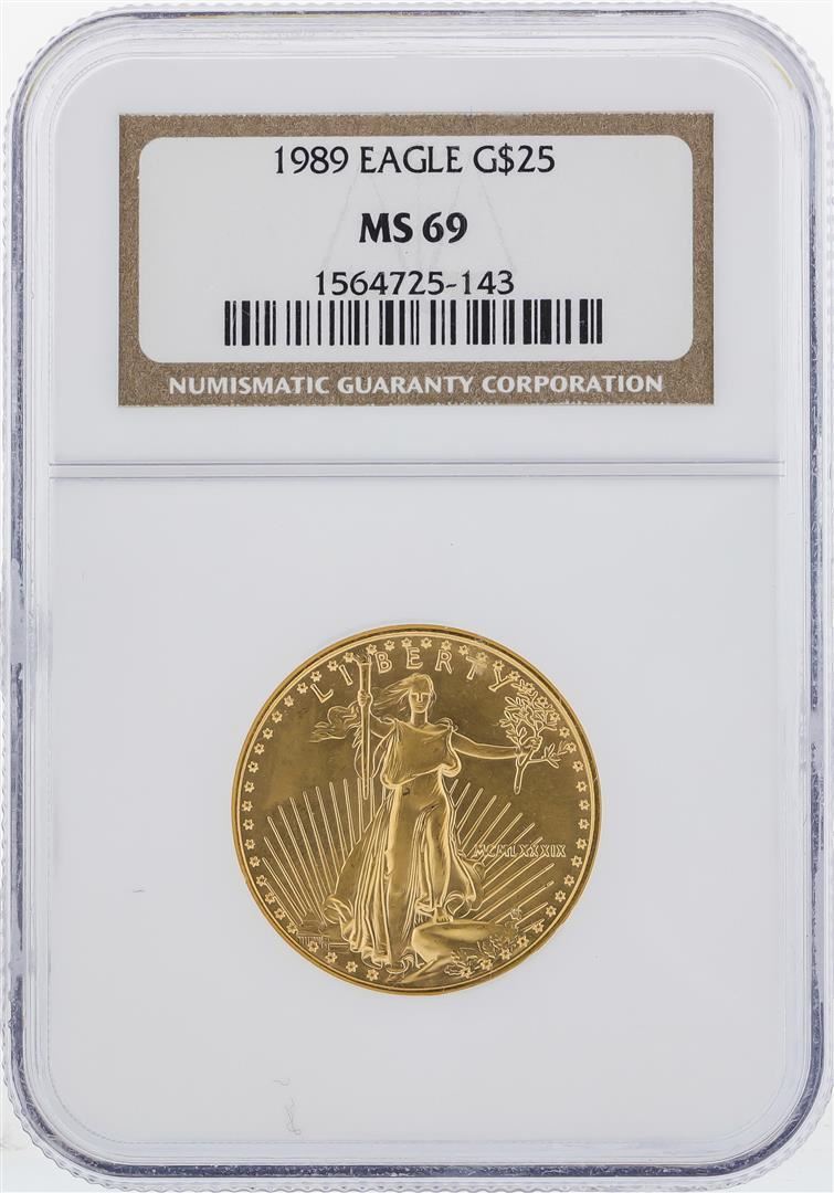 One 1989 $25 American Gold Eagle Coin NGC MS69. NGC Certified.