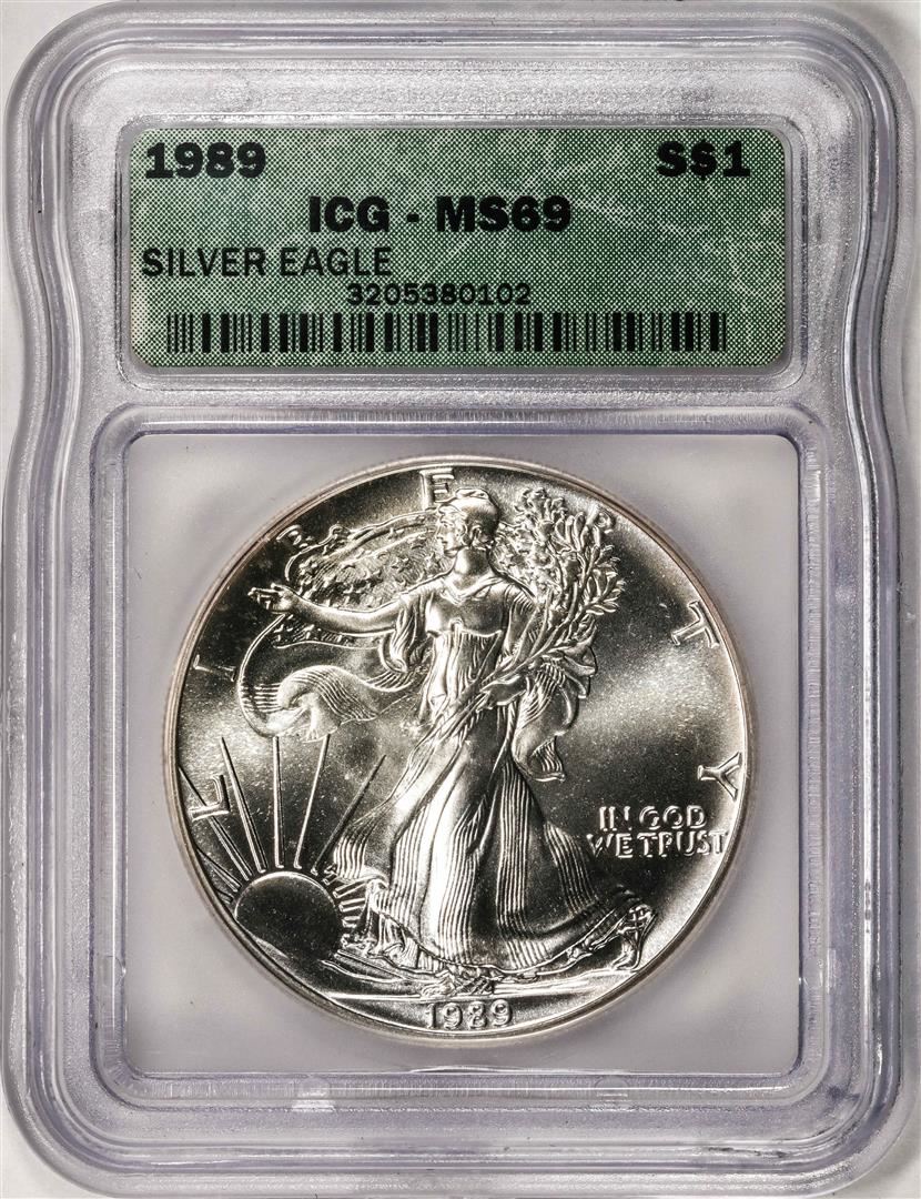 One 1989 American Silver Eagle Coin ICG MS69. ICG Certified.