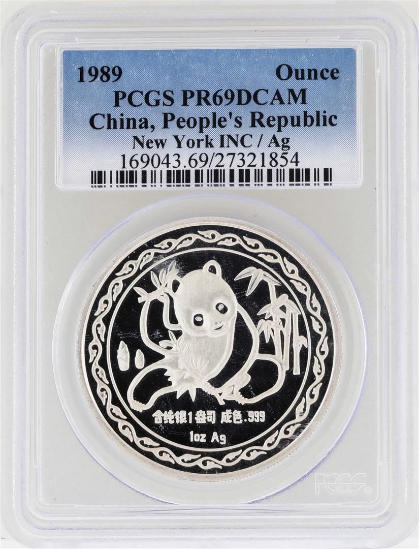 One 1989 China 10 Yuan Panda Silver Coin PCGS PR69DCAM. PCGS Graded.