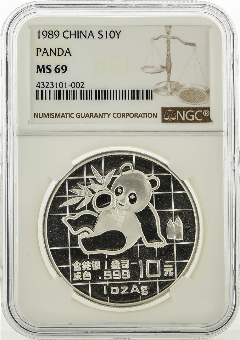 One 1989 China 10 Yuan Silver Panda NGC MS69. NGC Certified.