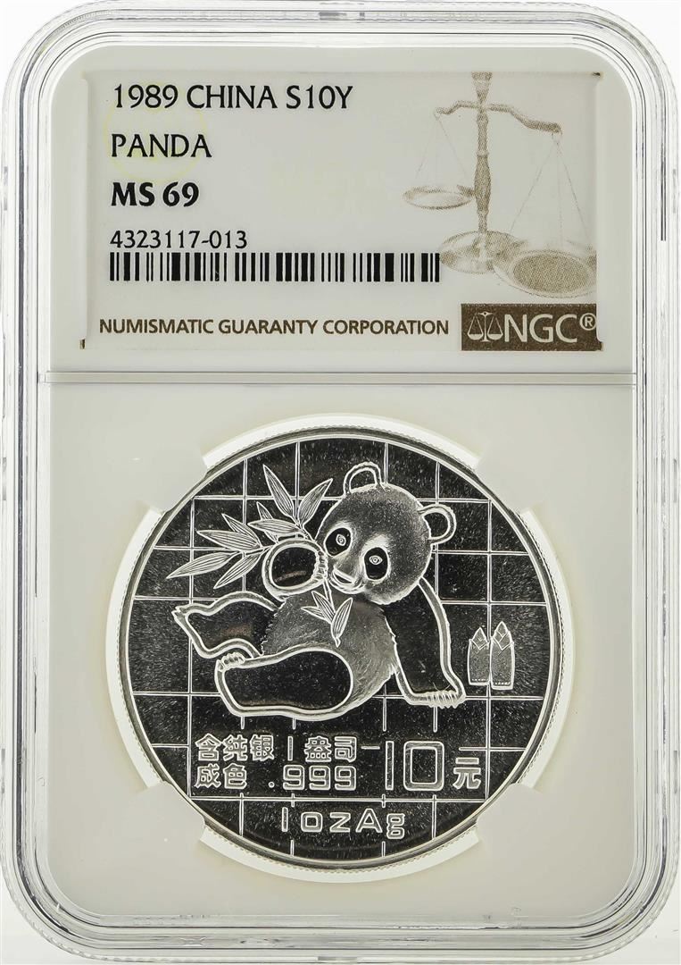 One 1989 China 10 Yuan Silver Panda NGC MS69. NGC Certified.