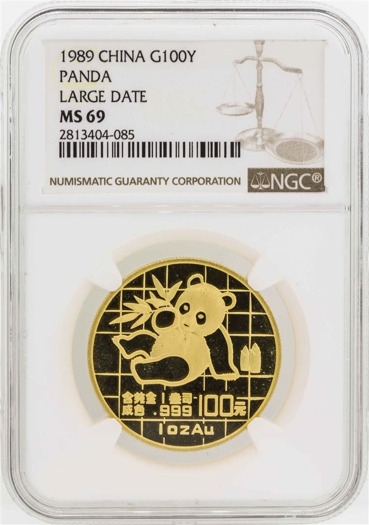 1989 Large Date China 100 Yuan Panda Gold Coin NGC MS69