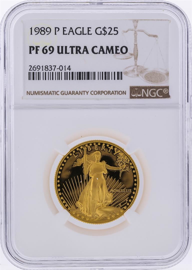One 1989-P $25 American Gold Eagle Coin NGC Graded PF69 Ultra Cameo. NGC Certified.